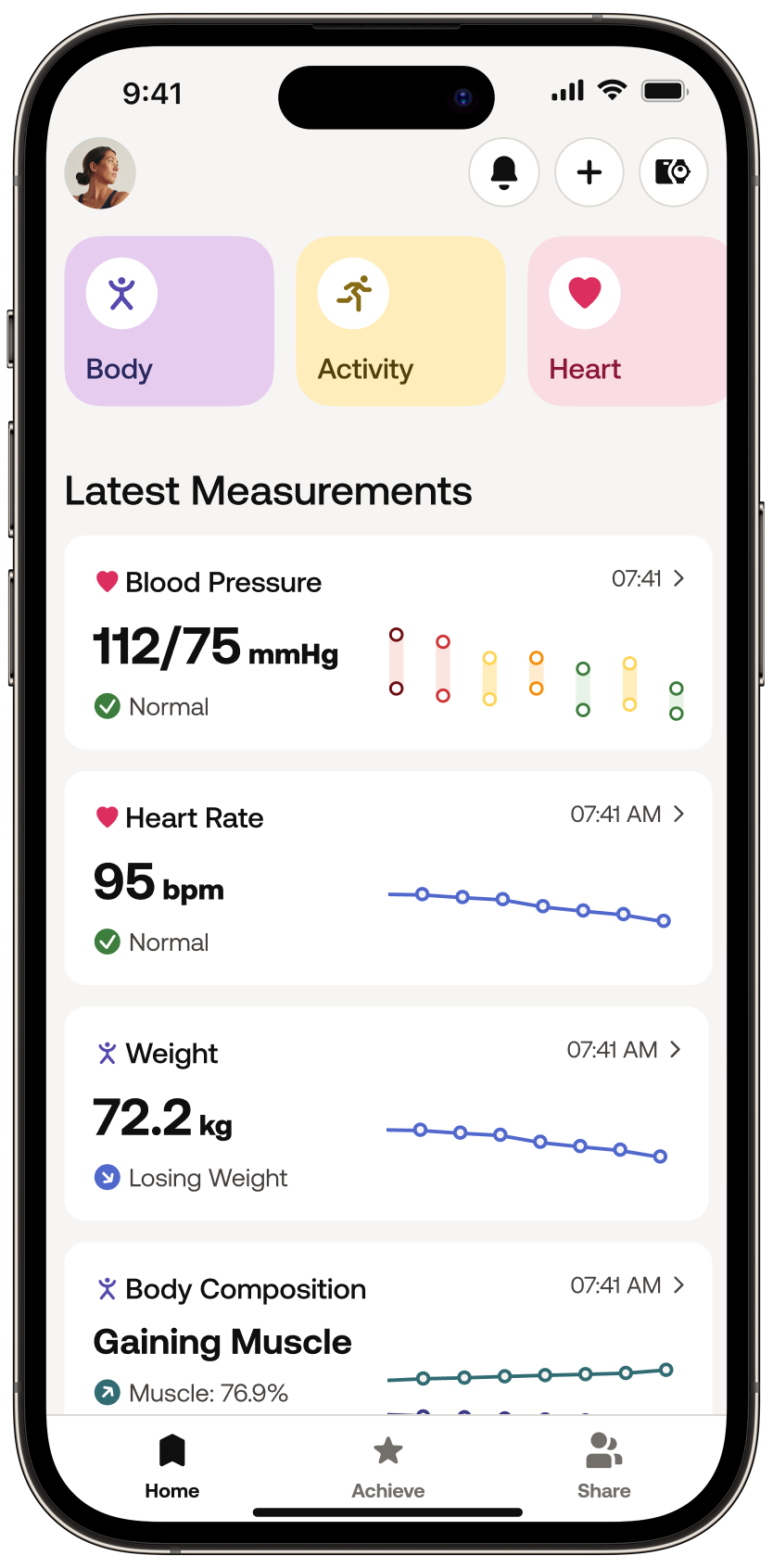 Withings devices provide leading-edge, accurate data that syncs directly to the Withings app. You get a clear picture of your health with easy to understand, detailed analysis. See weekly and monthly trends, and get actionable insights to help you reach your long-term health goals.